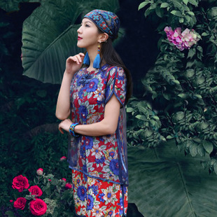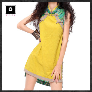 民族風(fēng)女裝 2014夏新款時尚中國風(fēng)連衣裙 原創(chuàng)旗袍連衣裙阿卡 /