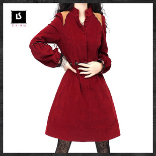 2014秋冬季新品 復(fù)古女裝燈芯絨拼接碎花修身裙 品牌連衣裙A6059 /