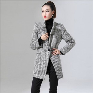 2013秋冬新款女裝韓版爆款外套 中長款千鳥格大衣 /