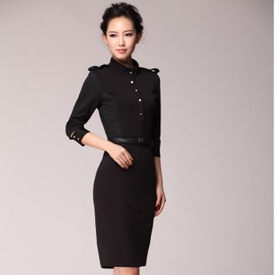 2014夏裝新款貝嫂同款復古立領(lǐng)肩章修身連衣裙(送腰帶) /