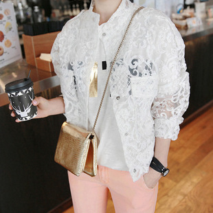 2014復(fù)古花紋歐根紗蕾絲透視短外套防曬衫空調(diào)衫 大量現(xiàn)貨 /