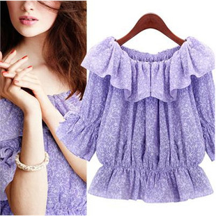 【鎮(zhèn)廠之寶】14夏裝新款韓版甜美一字領(lǐng)露肩橡筋收腰娃娃上衣6337 /