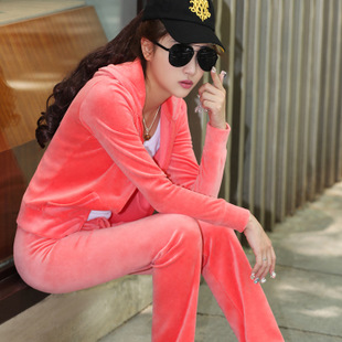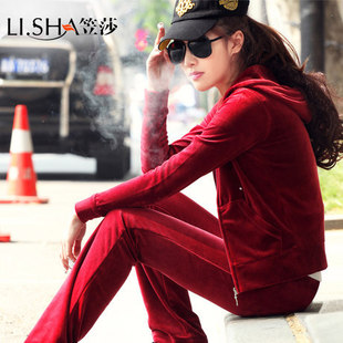 2014秋冬裝新款 韓國金絲絨女式衛(wèi)衣休閑運動套裝絨衫 長袖印花 /