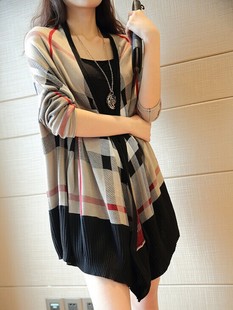 實拍 2014秋冬新款毛衣 簡約款 大格紋針織衫披肩外套 /