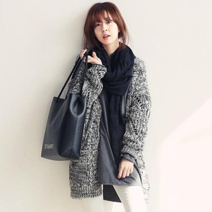 2014秋冬季新款女裝個性混合色毛衣長袖時尚粗針織開衫 /