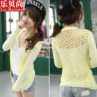 簡介:建議零售價 108.00 貨號 w4023 產地 義烏 品牌 樂貝尚 主圖來源 實拍有模特 貨源類別 現貨 是否庫存 否 風格 韓版 圖案 純色花朵 毛種類 混紡類 紗線種類 棉 含毛量 80%以上 毛線粗細 細毛線 毛衫工藝 針織 厚薄 適中 款式 開衫 組合形式 單件套 版型 修身型 衣長 普通款(50cm<衣長≤65cm) 衣門襟 單排扣 領型 無領 袖長 長袖 袖型 常規(guī)袖 流行元素 鏤空,不規(guī)則,鉤花 工藝 勾花鏤空 上市年份/季節(jié) 2014春季 顏色 白色,粉色,黃色,紅色,綠色,黑色,淺灰,橘色,西瓜紅,玫紅,天藍色 尺碼 均碼 面料 棉類混紡 袖子款式 泡泡袖 是否外貿 是