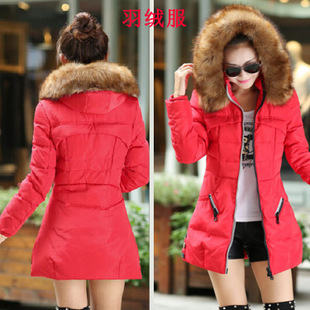 2014新款秋冬新款羽絨棉衣女裝韓版修身中長款毛領(lǐng)加厚大碼外套潮 /