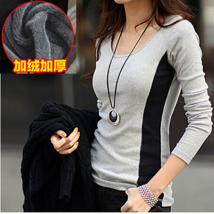 品質貨源 秋冬新款打底衫 拼接加絨打底衫長袖 時尚女士T恤批發(fā) /