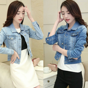 秋季女裝鉚釘牛仔女士外套夾克 女款長袖 韓版修身翻領短款牛仔衣 /