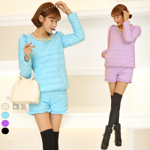 2014秋冬女裝新款韓版修身圓領(lǐng)套裝棉衣兩件套小棉襖棉服 /
