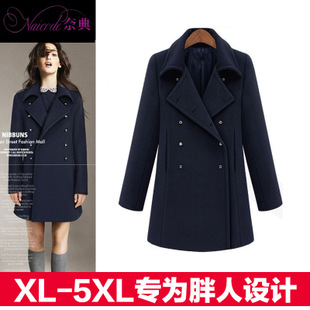 2014秋季新款 歐美胖MM毛呢雙排扣西裝領(lǐng)毛呢大衣預(yù)售 /