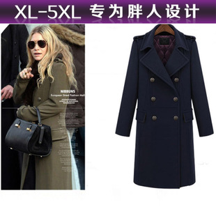 2014歐美大碼女裝冬裝新款胖mm長款加厚毛呢大衣外套一件代發(fā) /