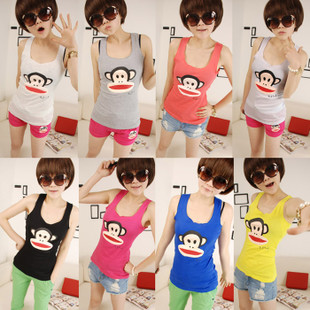 2014新款韓版純棉女士小背心 修身款工字型卡通背心吊 帶 女裝 /