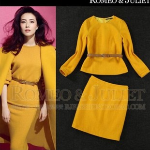 明星同款2014秋裝新款女裝 羊毛呢長袖上衣+包臀半身裙套裝 /