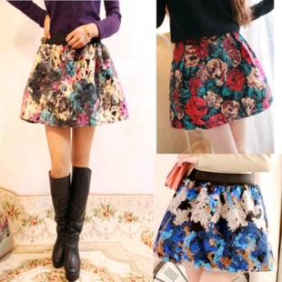 2014秋冬新款韓版復(fù)古加厚毛呢花苞裙蓬蓬裙半身裙女短裙子 /