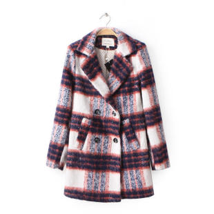 F92921冬季歐美風(fēng)西裝領(lǐng)雙排扣長袖毛呢格子大衣 外套女裝 /