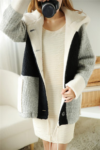 2014秋冬裝新款 日系森系休閑拼色口袋羊羔絨毛加厚呢子女裝外套 /