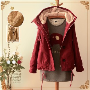 日系森女系純色百搭加厚羊羔絨連帽棉衣棉服2014秋裝新款女裝 /