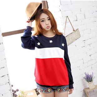 秋裝2014新款女裝拼接寬松休閑長袖星星衛(wèi)衣 毛衣 /