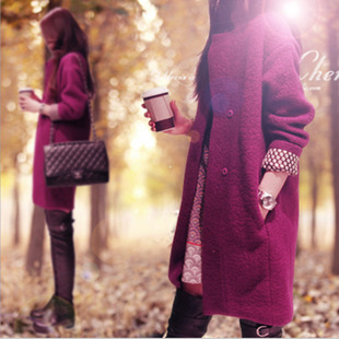 秋冬新款韓版女裝寬松大碼呢子大衣女中長款羊毛呢大衣外套 /