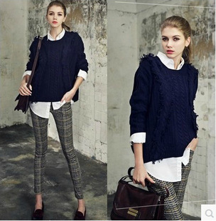 歐洲站2014新時尚長褲休閑套裝修身毛衣顯瘦鉛筆褲歐美女裝三件套 /
