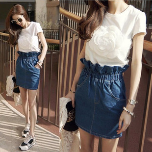 歐美女裝小香風(fēng)潮牌山茶花t恤純棉短袖修身百搭黑白款短款女t批發(fā) /