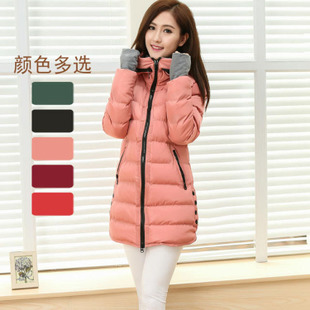 2014冬季新款 韓版修身女裝外套 加厚連帽中長款羽絨棉服女棉衣 /