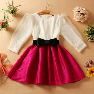 2014秋冬新款女裝韓版名媛釘珠長袖蓬蓬裙連衣裙(配蝴蝶結(jié)腰帶) /