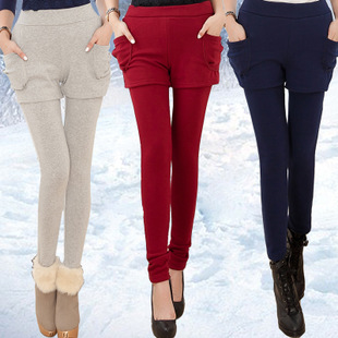 2014秋冬新款韓版時尚百搭短褲加絨大碼假倆件套打底女褲 /