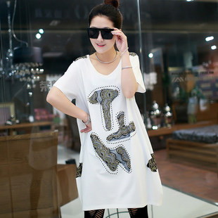2014夏裝新款胖MM大碼休閑T恤 韓版短袖中長款寬松個性上衣女裝潮 /