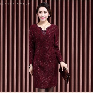 2014婚宴禮裝秋裝連衣裙高檔女裝大碼春秋長袖蕾絲連衣裙 /