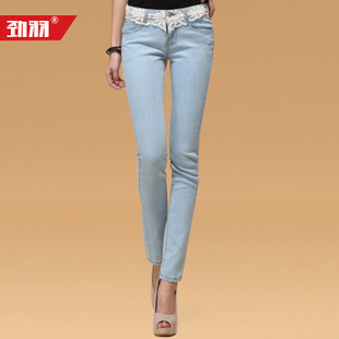 勁羽 批發(fā)新款春季韓版修身顯瘦蕾絲女式牛仔褲鉛筆褲長褲子 /