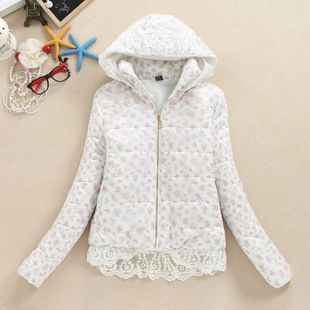 2014新款冬季韓版爆款甜美蕾絲小碎花棉衣女式修身棉服棉襖女 /