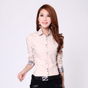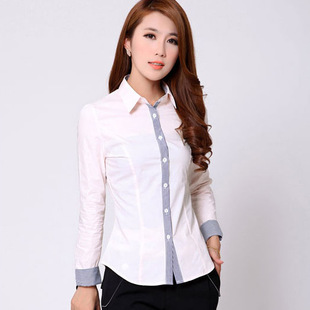 新款韓版修身顯瘦氣質(zhì)優(yōu)雅時(shí)尚職業(yè)OL純棉長袖收腰女襯衫 /