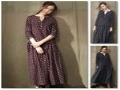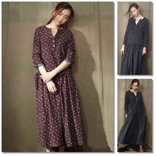 最新秋冬日系森女時尚文藝范碎花棉麻長袖衣褶皺女長裙廠家直銷 /