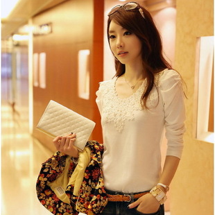 2014秋裝新款女裝打底衫 韓版修身時尚氣質(zhì)長袖蕾絲打底衫 批發(fā) /