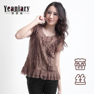 【淘貨源】14短袖新款中老年女裝批發(fā)爆款大碼T恤熟女蕾絲衫批發(fā) /