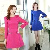 2013秋冬新款韓版女裝時(shí)尚立體花紋提花長袖修身打底連衣裙 /