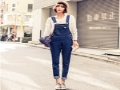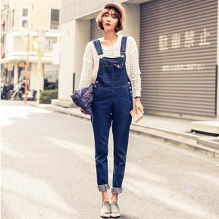 衣休服飾秋裝新款小清新學(xué)院風(fēng)牛仔背帶長褲卷邊褲潮 /