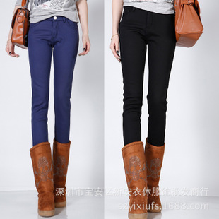 衣休服飾2014加絨加厚大碼彈力牛仔褲小腳彩色鉛筆褲 /