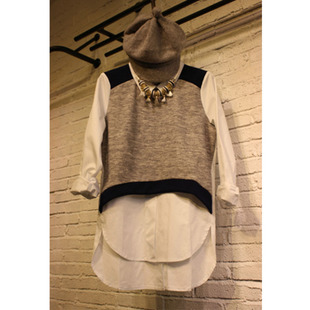 韓國東大門代購韓版女秋裝新款修身拼接假兩件襯衫針織衫好質(zhì)量 /