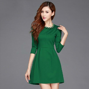 2014春季新款歐洲站明星款歐美大牌時尚純色打底修身七分袖連衣裙 /