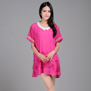 夏季韓版蕾絲刺繡連衣裙 女式短袖雪紡衫裙子 大碼女裝一件代發(fā) /