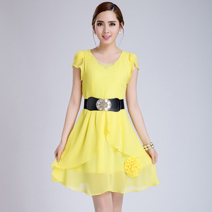2014夏季新款時(shí)尚韓版修身不歸則短裙 雪紡連衣裙 韓版修身連衣裙 /