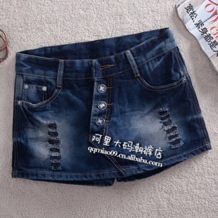 特大號牛仔短褲裙磨破熱褲破洞加大碼中腰胖mm短褲 26--40碼 /