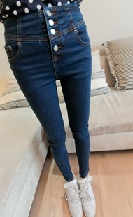 2014新款 紐扣高腰顯瘦個(gè)性牛仔鉛筆褲小腳褲 女長褲 廠家批發(fā) /