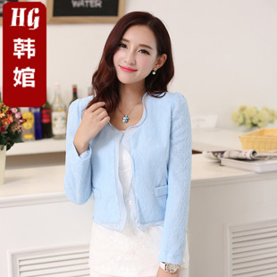 韓婠2014秋季新款短款長袖 淑女修身優(yōu)雅小西裝短外套 /