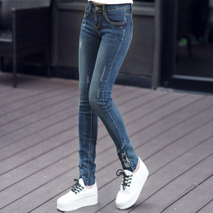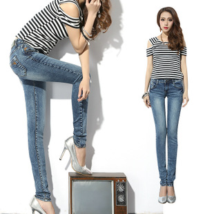9118#秋冬新款韓版中腰女式小腳褲彈力顯瘦鉛筆褲緊身女牛仔褲廠 /