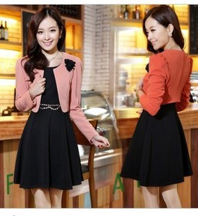 2014春秋新款韓版OL氣質(zhì)兩件套套裙大碼修身長(zhǎng)袖針織連衣裙 /