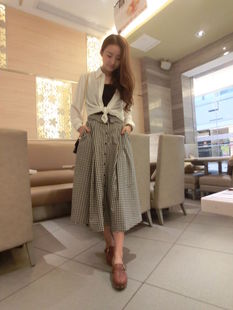 清倉2014秋季新款時尚田園風(fēng)純棉格子半身長裙 格紋半身裙 /